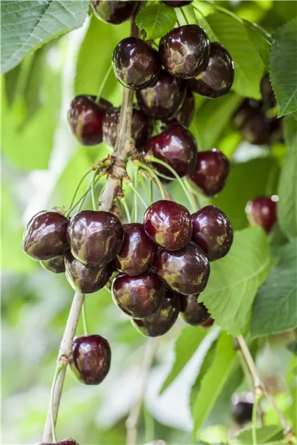 Vaisiai: dideli (9–12 g), odelė tamsiai raudona iki beveik juodos, blizgi.