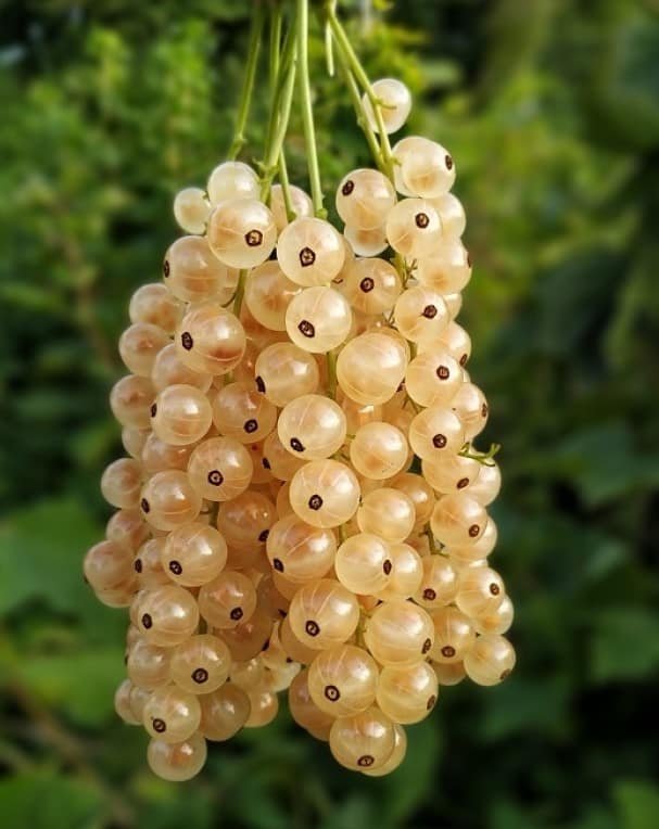 Vaisiai: vidutinio- stambaus dydžio, ilgomis, tankiomis kekėmis, šviesiai geltonos, balkšvos, skaidrios spalvos. Labai derlinga veislė (5-8 kg) nuo suaugusio krūmo. Tinkamos vartoti šviežios, taip pat desertams, kompotams, uogienėms, sultims.